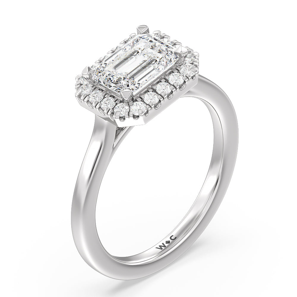 Let the enduring beauty and symbolism of this diamond ring solidify your relationship. This symbol of eternal love features a cathedral setting showcasing a diamond center stone set horizontally across the band. A sparkling halo frames the center gem for a classic yet unapologetically dramatic finish.