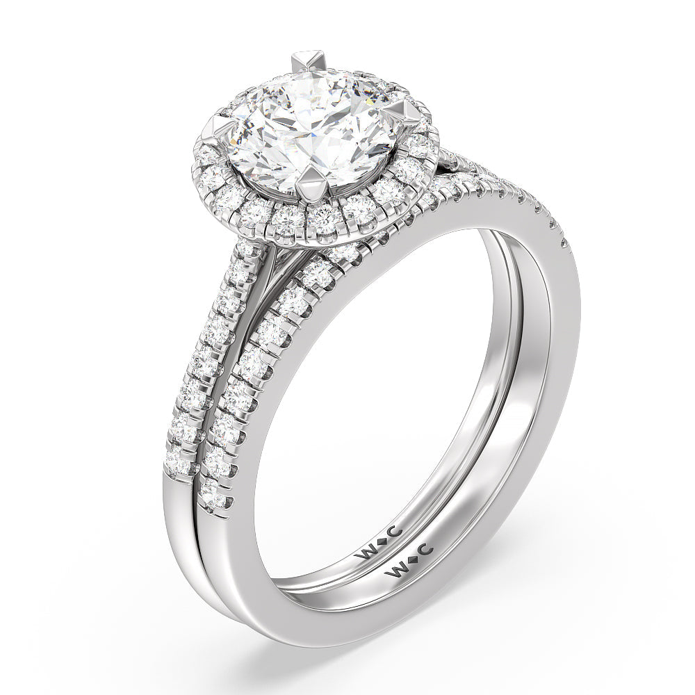 This softly curved diamond pave wedding band is the ideal accompaniment to our Fishtail Cathedral Halo Engagement Ring.