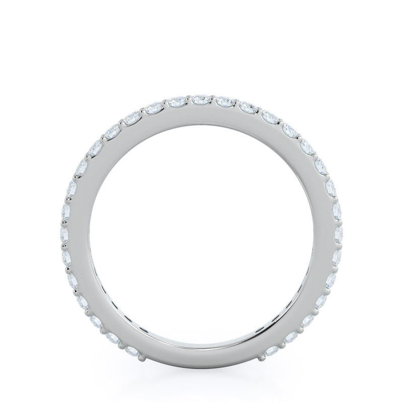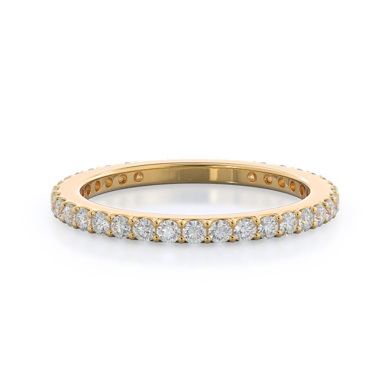The accent diamonds on this pave wedding band extend well past where your fingers touch and almost to the bottom of the ring to ensure it sparkles from every angle. But once you line it up with your engagement ring as a wedding band stack you’ll see that it also highlights your diamond ring’s unique features by sitting just below instead of blocking the diamond basket.